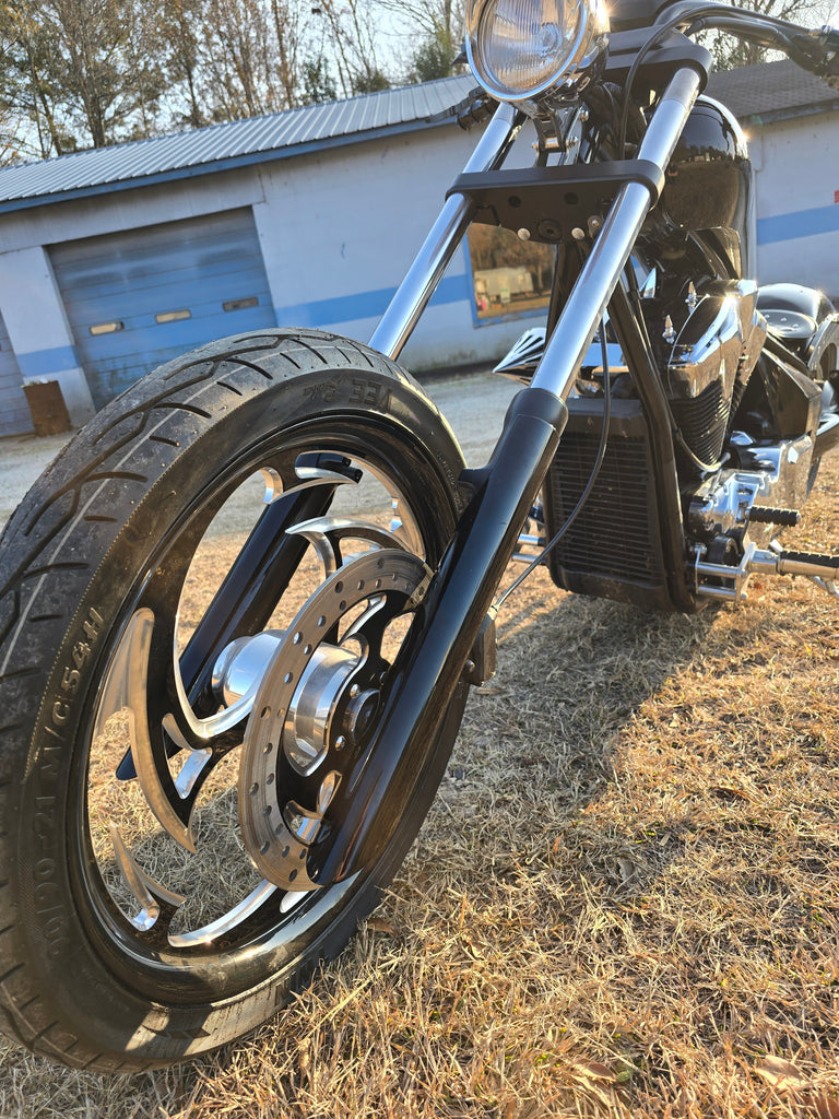 The Smoothie lower fork covers clean up the lower legs and add style.  They come with all hardware and just slide on over the lower legs.  They will help with the custom chopper look and make the front of the Fury more aggressive. They come as a set of two for both forks. With all hardware. Powder coated gloss black.